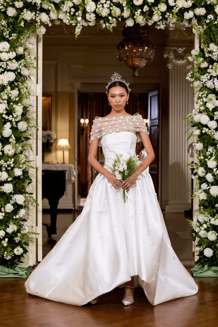 بالنسبة لمجموعات خريف 2024، ظهرت كل من THEIA وMorilee من Madeline Gardner لأول مرة في تصميمات بطول الكاتدرائية تتميز بنسيج أنيق مطرز حول الحواف.