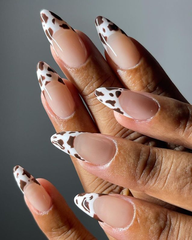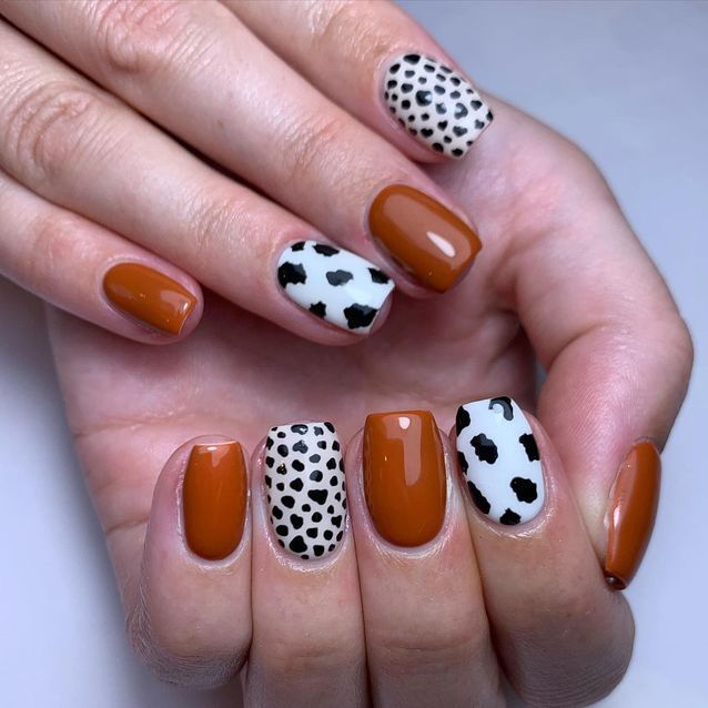 مناكير بنقشة جلد البقرة بأحجام متفاوتة مع مناكير باللون البني