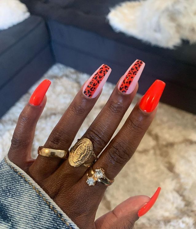 مناكير باللون البرتقالي مع نقشة الفهد