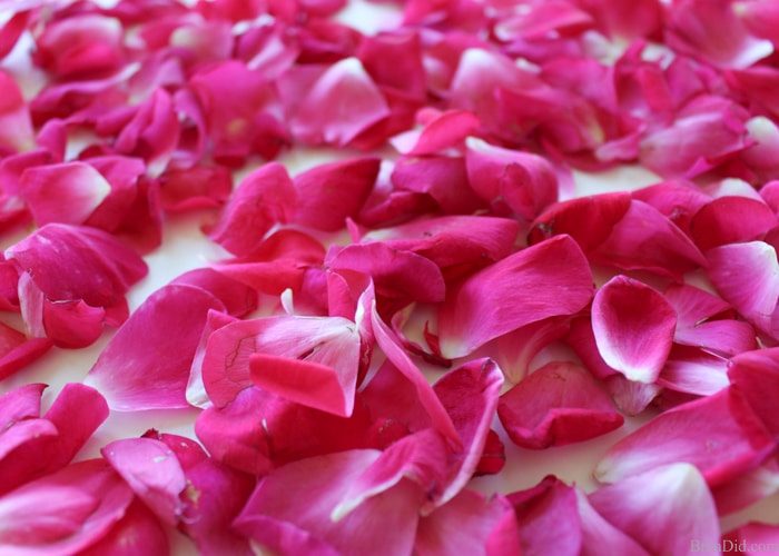 بعد تنظيف بتلات الأزهار قومي بنقعها في وعاء به الماء واتركيه لليوم التالي.