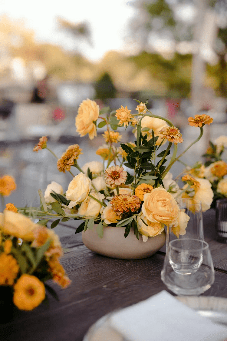 إضافة الزهور الصفراء المتناسقة على طاولات الإستقبال
