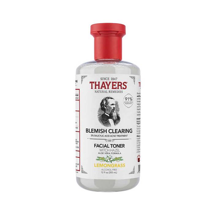 لذلك عليك نقع قرص من القطن في تونر سائل خالي من الكحول مثل تونر Thayers Blemish Clearing 2٪ الذي يساعد في علاج حب الشباب بسبب احتوائه على حمض الساليسيليك.
