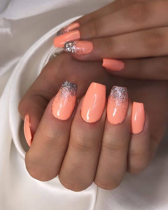 لصاحبات الذوق الجرئ والملفت للانتباه عليهن تطبيق هذا النوع من اللون البرتقالي، حيث يمكنك طلاء كافة اليد الواحدة بالبرتقالي ثم تطبيق جليتر برونزي على ظفر واحد فقط.