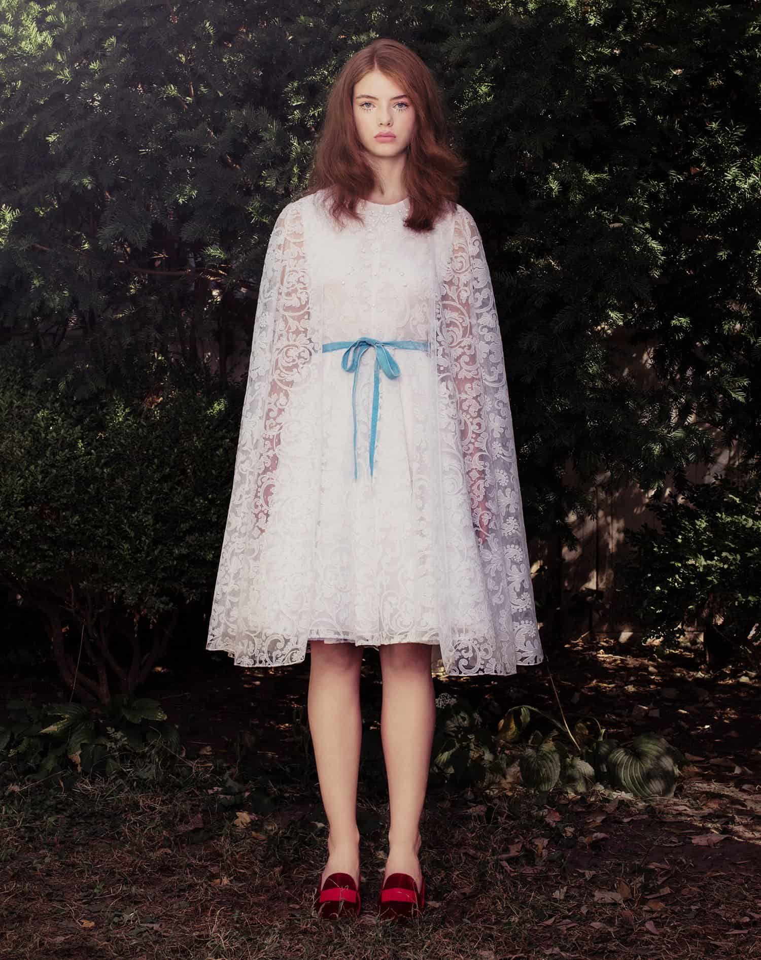 ما يميز هذا الفستان هو ياقته وأكمامه الفريدة والغريبة.