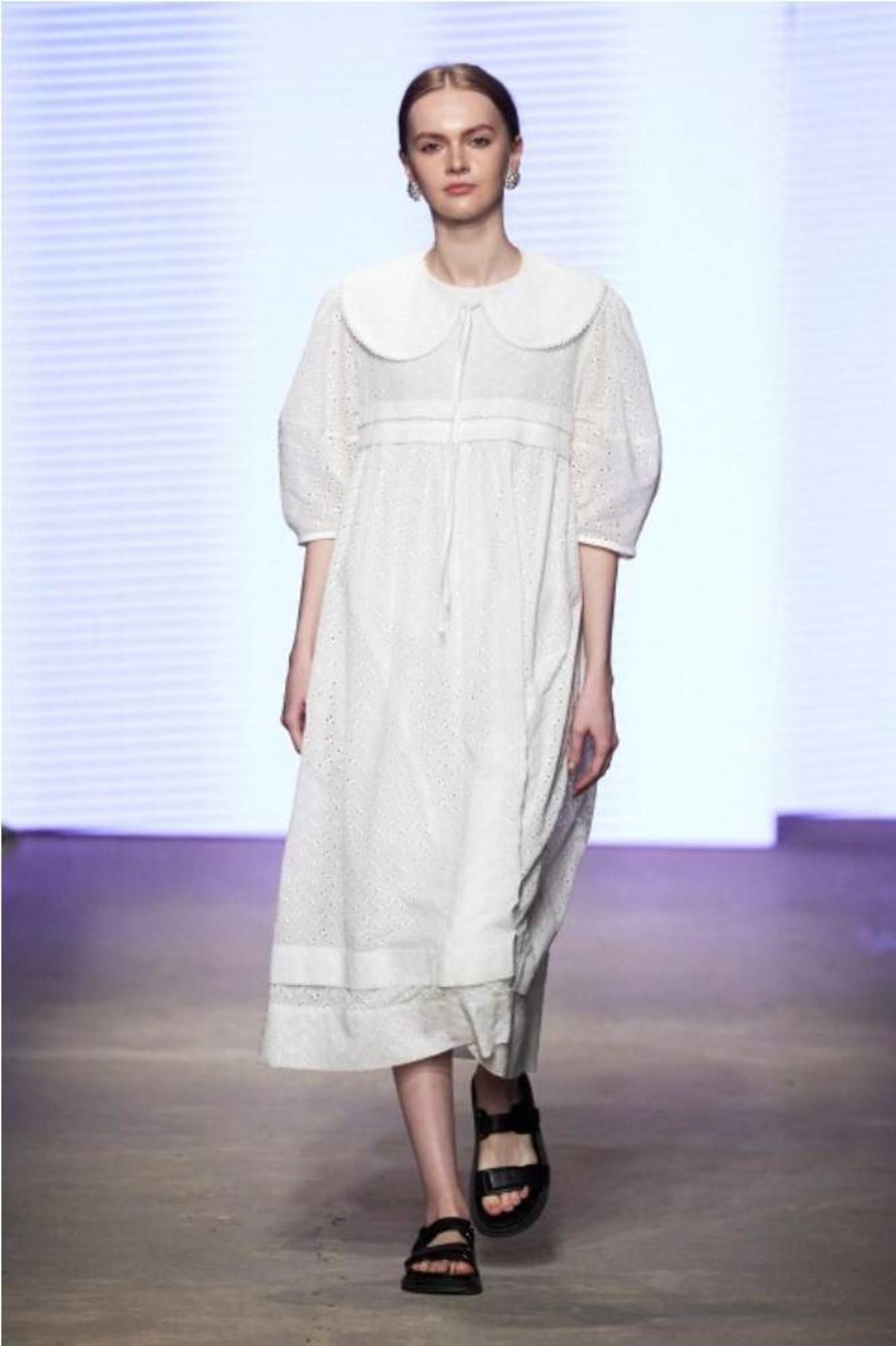 من اكني Acne اخترنا لك هذا الفستان المطبوع، يمكنك تنسيقه مع بوت عالي، وحقيبة باللون الأبيض الجذاب.