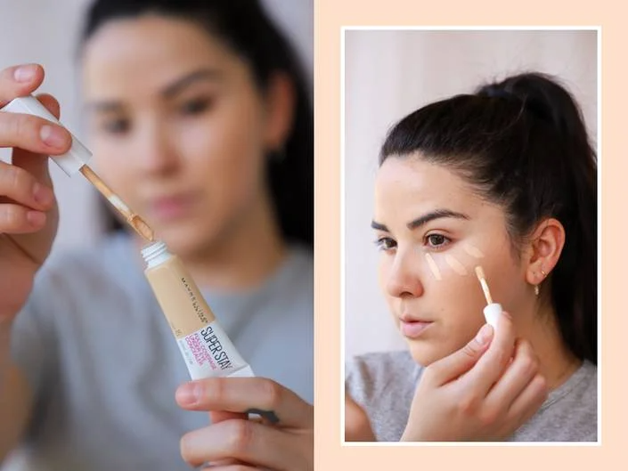 بعد ذلك، ضعي الكونسيلر أسفل عينيك على شكل مثلث مقلوب. تضمن لك هذه التقنية تغطية طبيعية وتضيء محيط العيون. نوصي بكونسيلر Maybelline New York Super Stay Concealer لتغطيته الكاملة مع ضمان الترطيب.