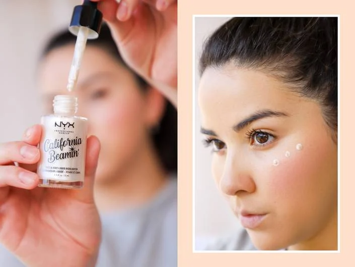ضعي الهايلايتر NYX Professional Makeup California Beamin Highlighter على طول الجزء العلوي من عظام الوجنتين، على قوس كيوبيد، وسط الذقن وعلى جسر أنفك.