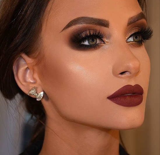 طبقي غليتر باللون الذهبي عند منتصف الجفن العلوي وصولا لزاوية العين الداخلية.