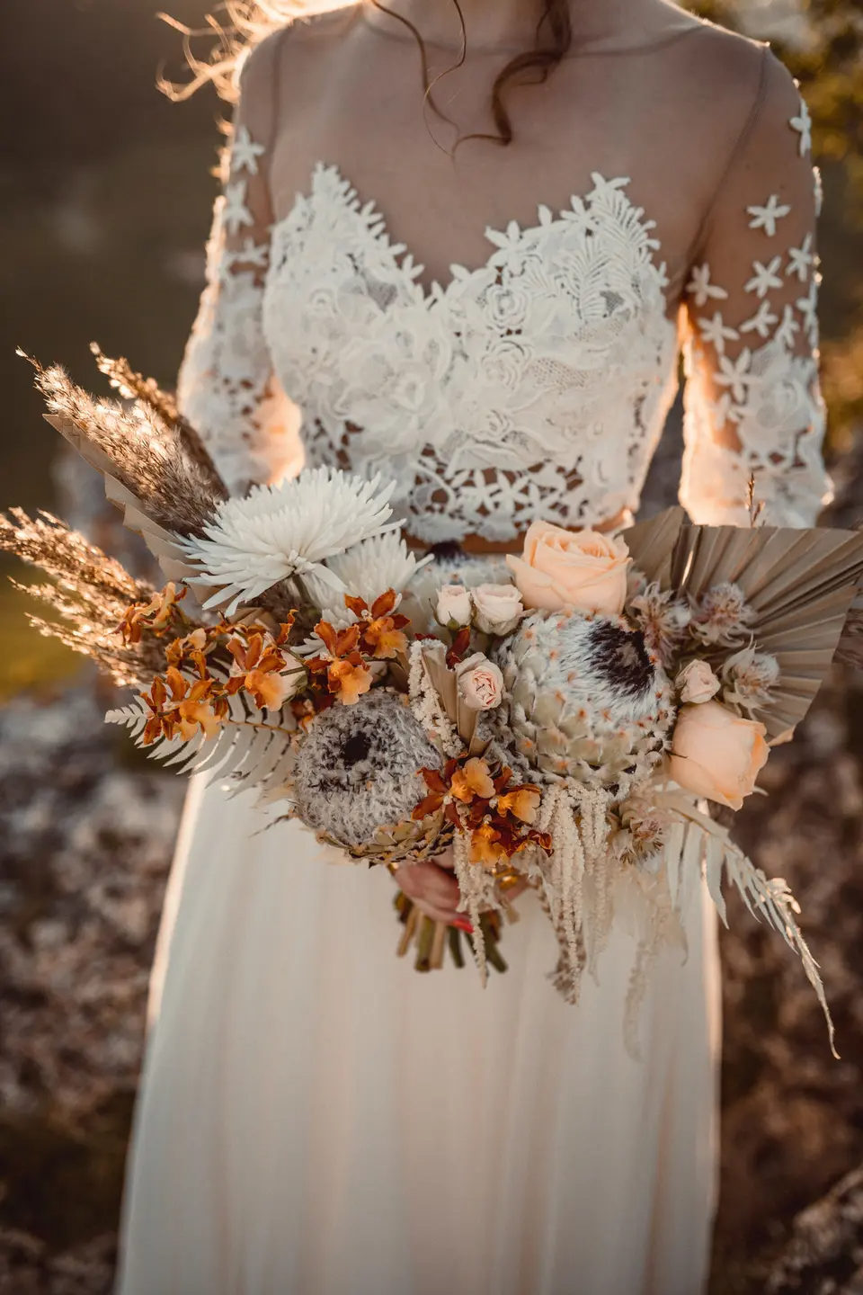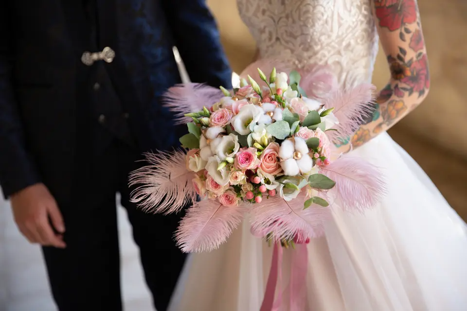 تضيف باقات الورود الملونة، لمسة جمالية على إطلالتك، يمكنك استخدام أعشاب البامبا ، أو اللاغوريين ، أو زهور المكنسة، يمكنك أيضًا استخدام السرخس أو الريش المزيف، للحصول على باقة متنوعة من الألوان المتناسقة.