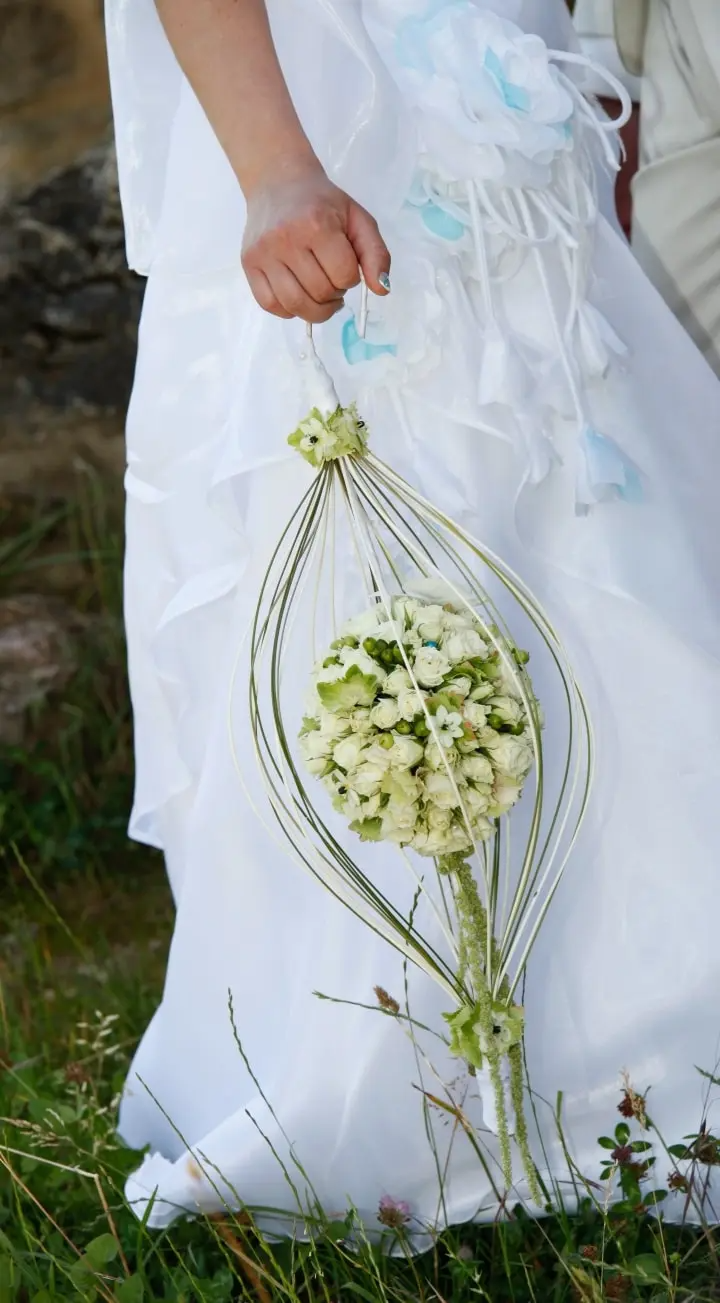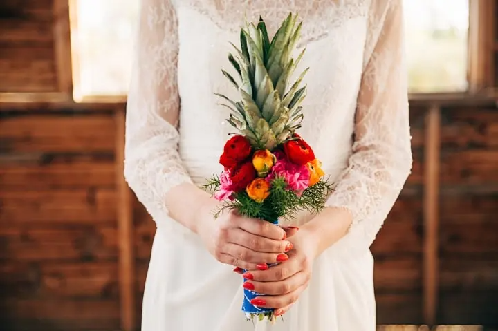 للتمتع بإطلالة جذابة وعصرية، يمكنك تجربة باقات زفاف على شكل عمودي ويمكنك استخدام جميع أفراد عائلة تيلاندسياس ، وهي نباتات رائعة من عائلة الأناناس، حيث يمكنك استخدام سيقانها لأنها صلبة ومستقيمة.