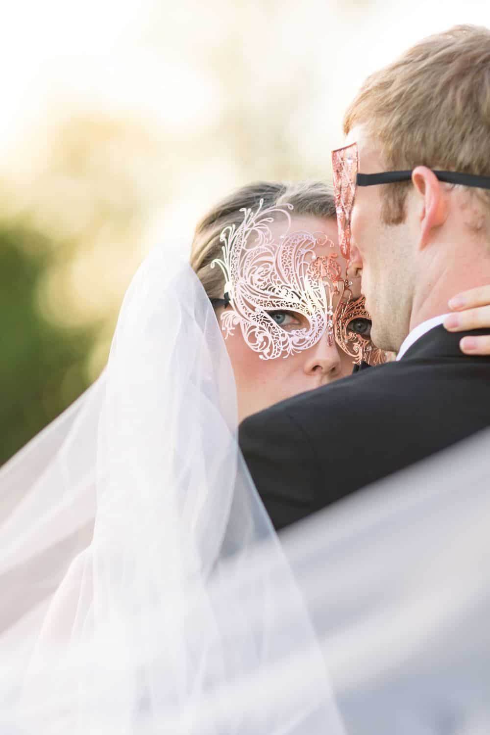 إذا كنت تريدين التقاط بعض الصور بالأقنعة الخاصة بحفلات الزفاف فيمكنك تجربة بعض الأنقعة البسيطة.