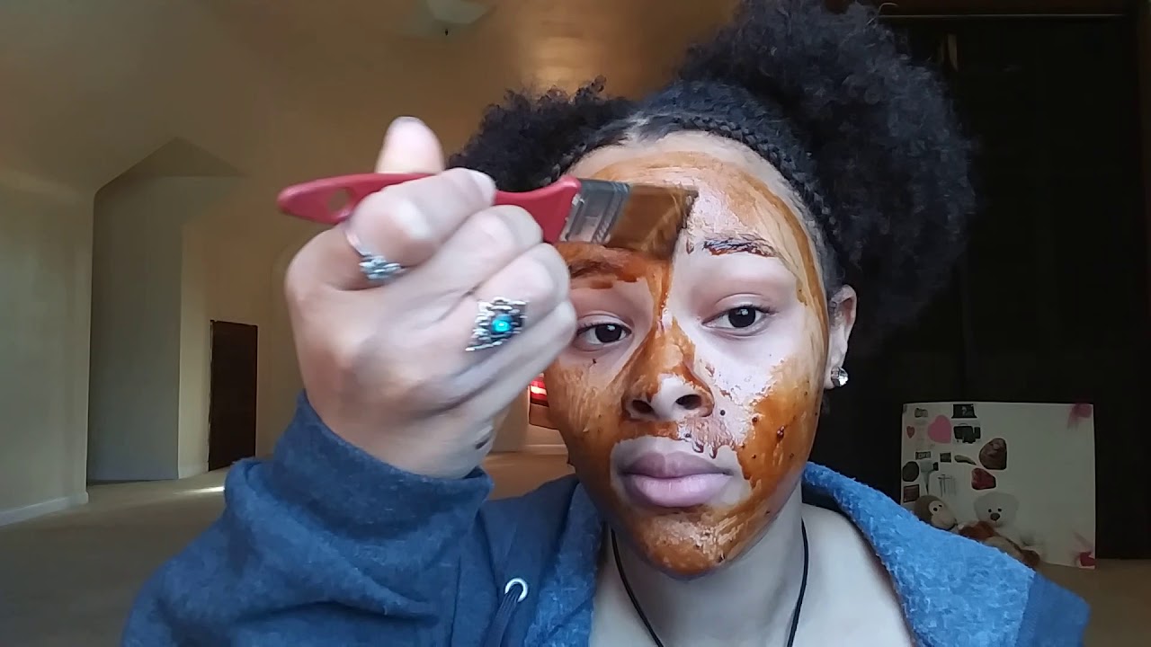 - ضعي ماسك التقشير هذا على وجهك باستخدام أصابعك (الفرشاة تمتص الزيت)