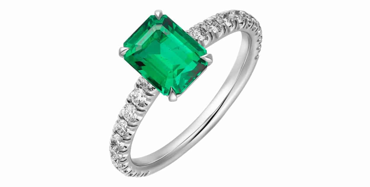 – خاتم خطوبة كارتييه “1985” من البلاتين والماس والزمرد