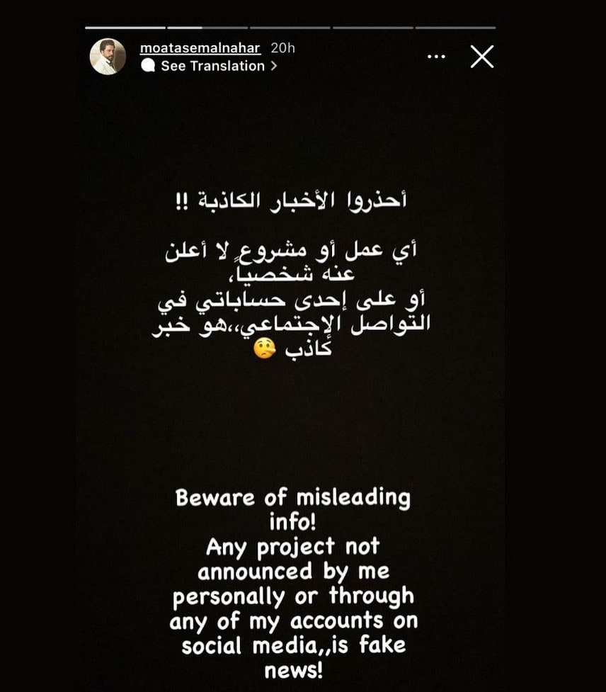 هذا وتعرض معتصم النهار للشائعات حول مشاركته في بعض الأعمال الفنية لكنه سرعان ما نفى الأمر ونوه إلى أنه المصدر الوحيد للمعلومات الصحيحة والغير الكاذبة.