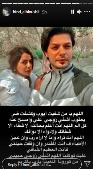نشرت الممثلة الكويتية هند البلوشي صورة عبر خاصية الستوري على حسابها الخاص على الانستغرام رفقة زوجها المطرب العراقي على يوسف معلنة إصابته بفيروس كورونا.