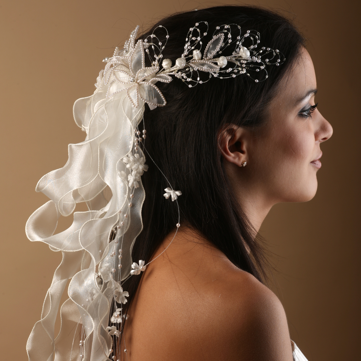 يمكنك اختيار أكسسوارات فاخرة تثبت الطرحة وتجعل الفستان أكثر انساجاما وتوافقا مع تسريحة الشعر.