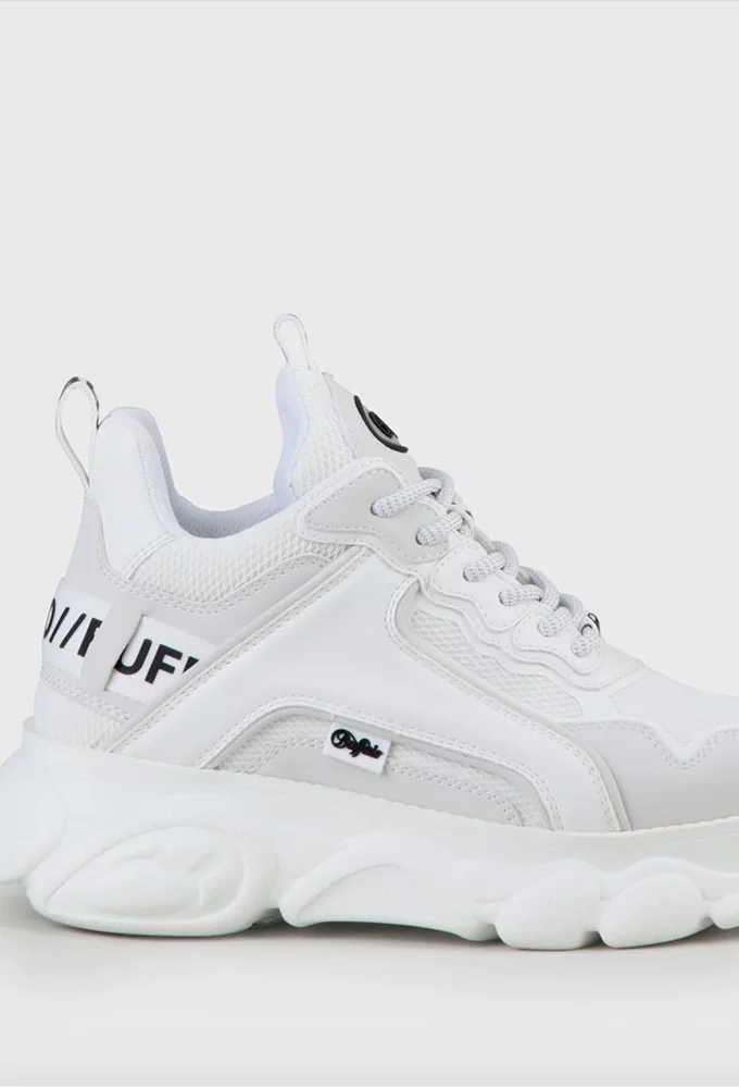 حذاء رياضي مرتفع باللون الأبيض مع طبعة الكتابة باللون الأسود من Buffalo
