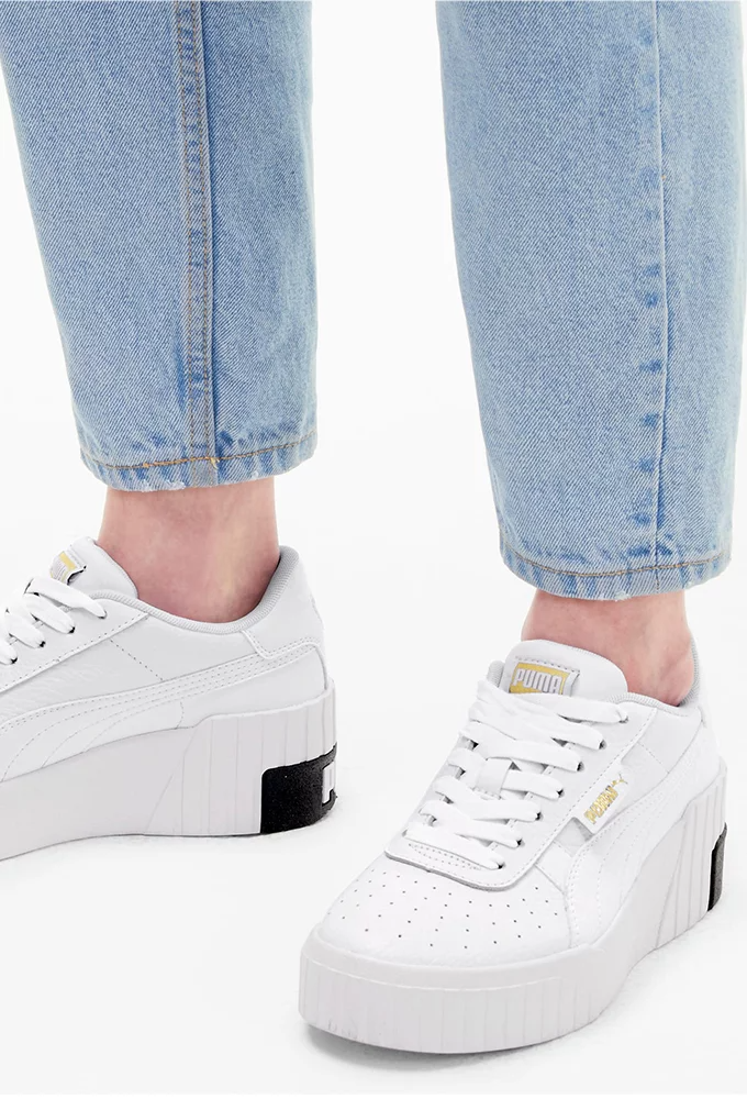 حذاء رياضي مرتفع باللون الأبيض والأسود من Puma Cali Wedge