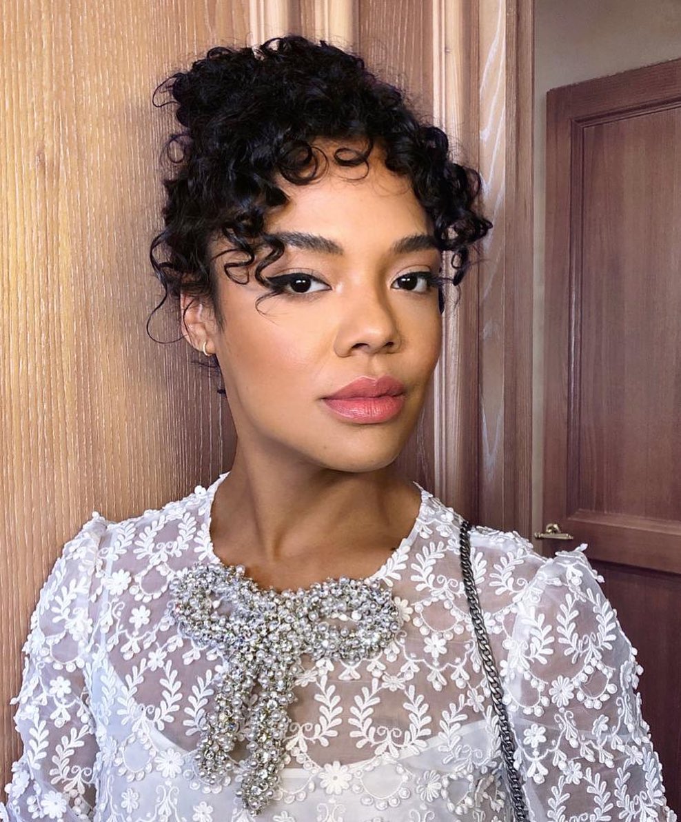 تسريحة الكعكة العالية الفوضوية مع غرة كيرلي: هل أنت صاحبة شعر كيرلي وترغبين في الحفاظ على إطلالة ناعمة وبسيطة؟ إذن ارفعي الشعر ولفيه في شكل كعكة واتركي الغرة كيرلي كما هي.
