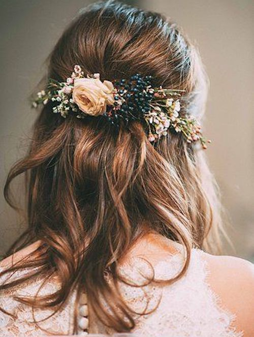 تسريحة نصف مرفوعة مزينة بالورود