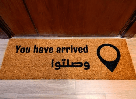 سجادة مدخل المنزل حسب الطلب: يمكنك الحصول على سجاد أنيقة لمدخل المنزل تكون مصنوعة يدويا أو تحمل عبارة أنيقة للترحاب بالعروسين، نقوش الحروف الأولى من اسميهما أو عبارة يفضلانها أو حتى أي شيء يجعلها هدية حميمة للعروسان.